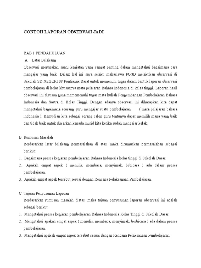 Doc Contoh Laporan Observasi Jadi Bab 1 Pendahuluan Renaldo Oktoberi Academia Edu
