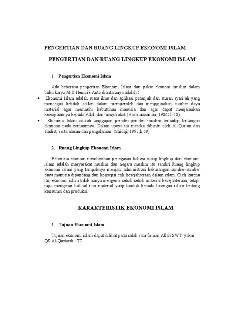 Ekonomi adalah hal mendasar yang dibutuhkan oleh manusia untuk hidup dan berkembang di muka bumi. Attribution Non-Commercial BY-NC Format Tersedia. Ekonomi islam adalah satu satunya sistem yang sempurna yang mengatur seluruh sendi kehidupan manusia dalam kegiatan perekonomian dengan prinsip ilahiyah.