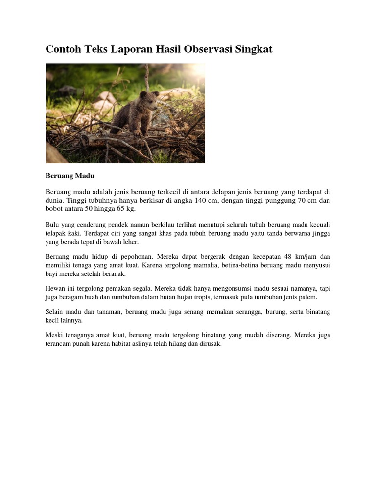 Contoh Teks Laporan Hasil Observasi. Sehingga lovebird bisa hidup dengan baik. Beruang madu sendiri merupakan jenis beruang terkecil yang terdapat di dunia.